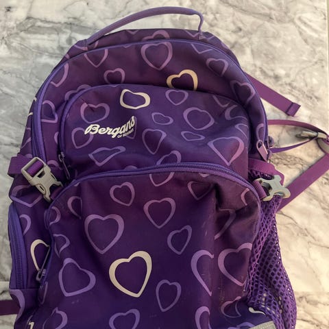 Trekk til å ha over ryggesekk -Bergans. Ukjent størrelse, men vi har brukt trekket til ulike ryggsekker barnestørrelser.
