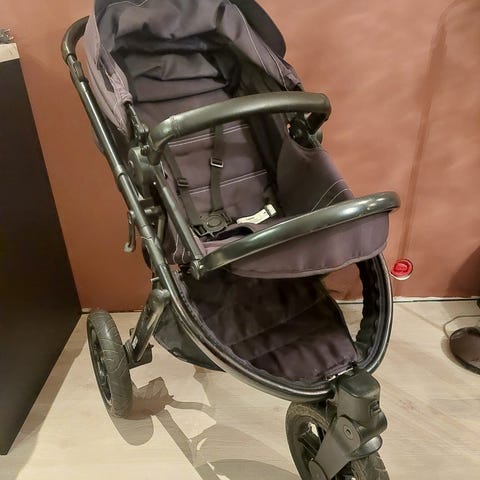Britax barnevogn med avtagbar liggedel og justerbar sitteposisjon. Sort farge med polstret sete og sikkerhetssele. Fire hjul med støtdemping og oppbevaringskurv under. Passer for barn fra nyfødt til småbarnsalder. 5 punkt sele funksjon