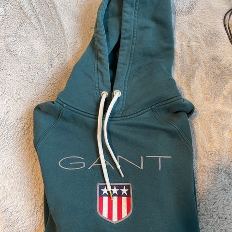 GANT hettegenser i størrelse S, laget av bomull. Genseren har hette og er grønn i fargen. Passer for menn.