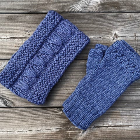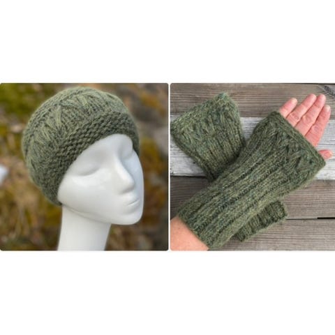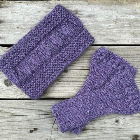 Sett med pannebånd /ørevarmer og pulsvanter /pulsvarmere, håndstrikket, nye