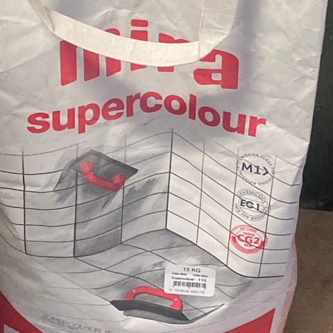 Selger to ubrukte sekker Mira supercolour 115 lysgrå 15kg. Kjøpt på Megaflis. Ny pris er 219 kr per sekk.