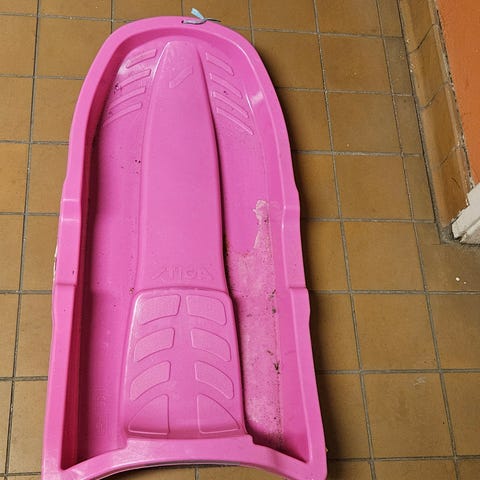 Stiga akebrett for baby i rosa og svart farge. Brettene har sikkerhetssele. Det rosa mangler orginalsele, men har festet på en vognsett.