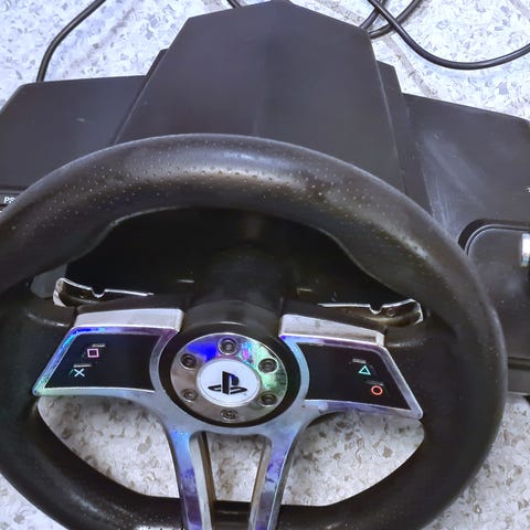 Logitech G29 racinghjul tror jeg, med tilhørende pedaler. Utstyrt med flere knapper på rattet og en pedalstasjon med tre pedaler. Designet for bruk med spillkonsoller og PC. Farge: svart. Jeg brukte denne på Pc, og tror den bare funker der, men kan være det går på ps4/5 å. Har ikke prøvd.