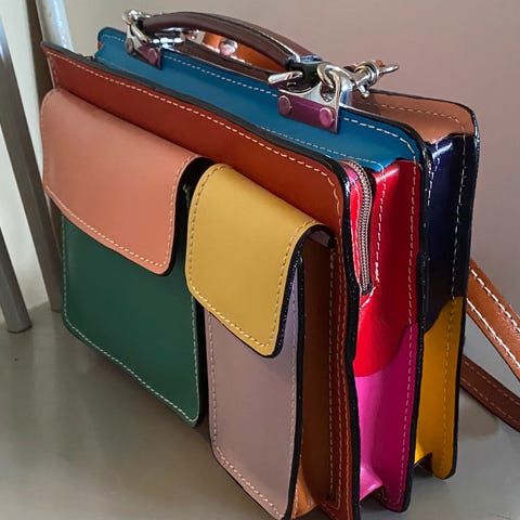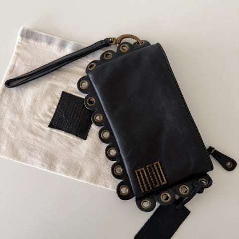Veske/ clutch i semsket skinn designet for unisex bruk fra det norske merket MOO. Størrelse: 16 x 16 cm, Hanken er 15 cm. Materialet gir en myk og slitesterk overflate. Passer til daglig bruk og ulike anledninger.