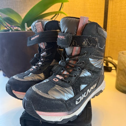 Pent brukte, litt slitasje på tuppen av sålen på den høyre skoen.