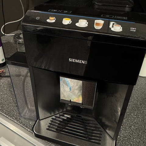 Siemens EQ.9 s.500. helautomatisk espressomaskin med digitalt display og multifunksjonelle bryggevalg. Maskinen har innstillinger for ulike kaffetyper som café crème, espresso og melkeskum. Ny smørt og renset, nye pakninger i bryggeenhet. Kommer med avkalking og rense tabletter