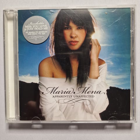 Albumet Apparently Unaffected av Maria Mena. Veldig pent brukt. CD-en har ingen riper 🥰 Inneholder CD + et hefte med alle tekstene til låtene på albumet.