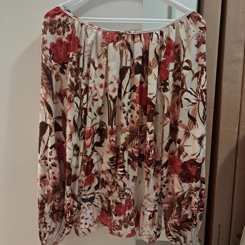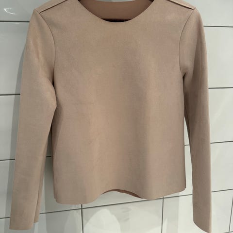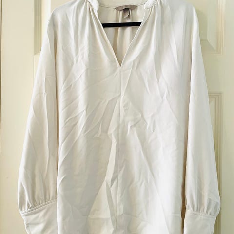 H&M bluse i størrelse S for kvinner. Blusen er beige og laget av polyester. Den har langermet design og rund hals. Passer til ulike anledninger og kan kombineres med flere plagg.