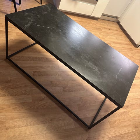 Fint hvitt salongbord med glassplate og hylle under - mye god bruk igjen!