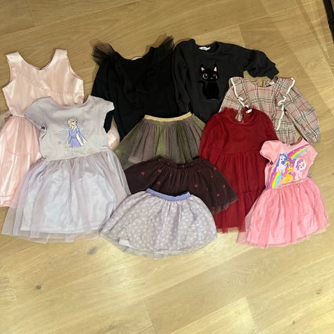 Selger noe veldig pent brukt og noe mere synlig brukt kjoler og skjørt til jente størrelse ca 3-4 år.