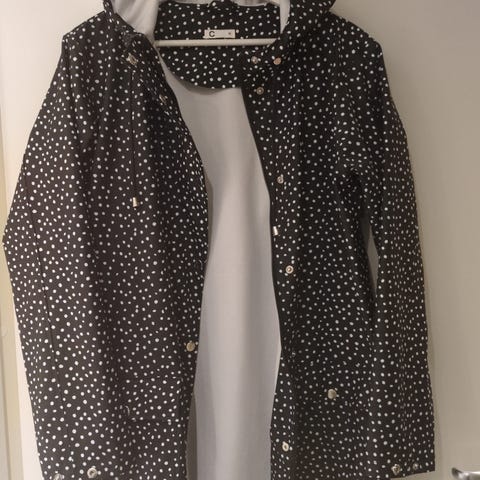 Mørkegrønn regnkåpe fra Cubus. Litt slitasje på lommene og hempen til å henge opp er ødelagt. Ellers i fin stand.