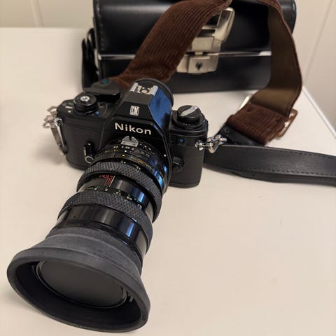 Selger en vintage Nikon EM 35mm SLR Kamera i kjempe fin kosmetisk stand. Utgit i 1979. Ikke testet med film, men alt ser helt utmerket ut.