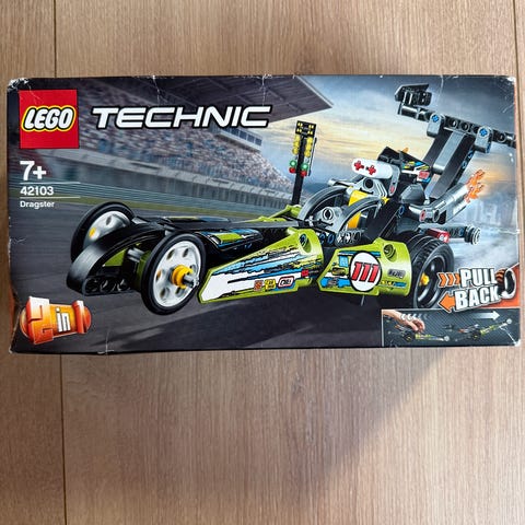 LEGO Technic 42103 Dragster bilsett med trekkfunksjon.