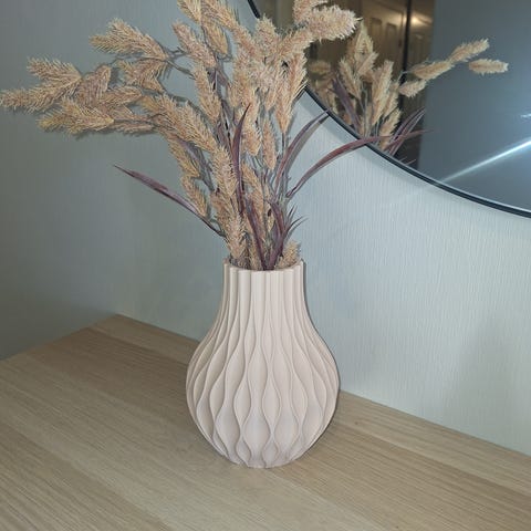 Moderne og stilren vase produsert med 3D-printing. Vasen har et elegant, spiralformet design som passer perfekt i moderne hjem, kontor eller som gave.