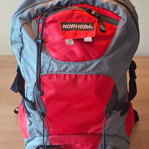 Norheim Snorre lett hoftesekk med god plass, anslår ca 7-8 liter, med plass til flaske ell lignende i lommer på sidene.