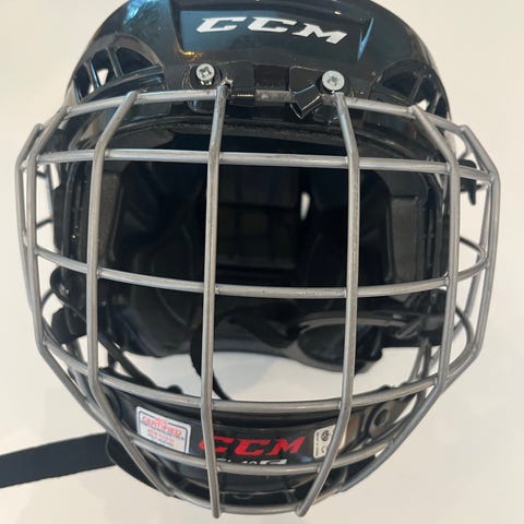 CCM FL40 XS ishockeyhjelm i rød farge. Hjelmen har gitter for ansiktsbeskyttelse og er tilpasset ishockeysport. Størrelse XS.