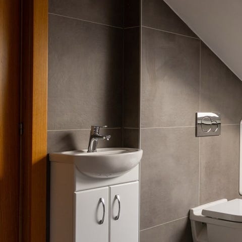 ~ Silikon rundt servant og speil kan fornyes for penere finish.