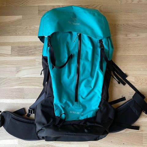 Ubrukt klatresekk fra Black Diamond i grønn, 15L. Har hoftebelte og brystbelte med.