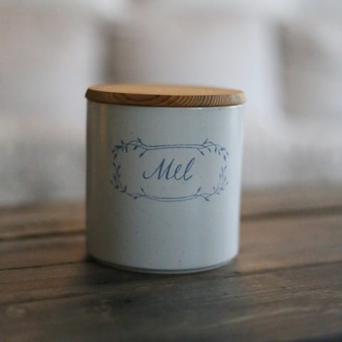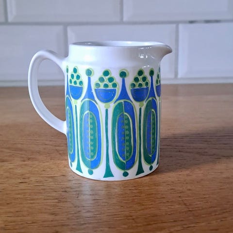 Figgjo Flint Mecca i keramikk med lokk. Krukken har dekorative mønstre.