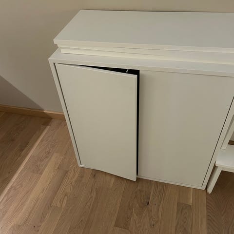 IKEA EKET skap med dør, grå. Hull bak for ledninger.