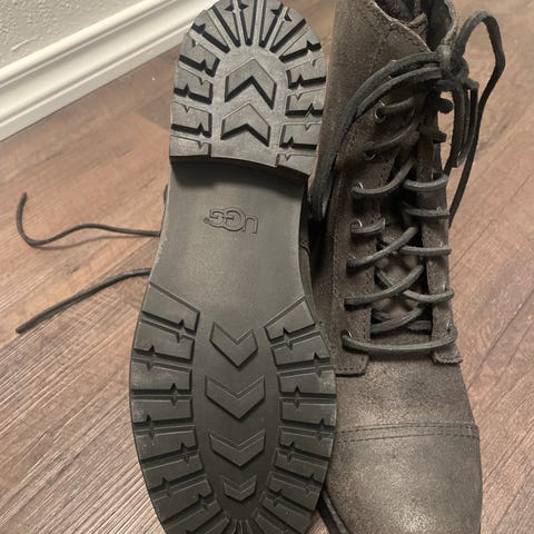 UGG Vinterstøvler i størrelse 40 med svart farge. Støvlene har foret innside for varme og komfort, og en solid såle med trehæl. Materialet er egnet for kalde værforhold.