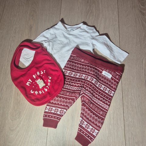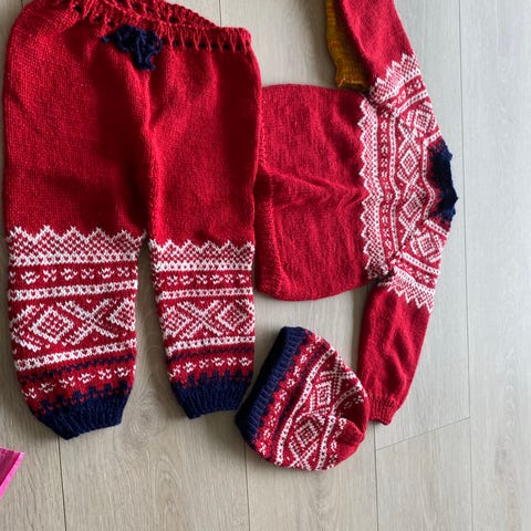 strikke sett baby str 62, bukse genser, body, smekke og sokker