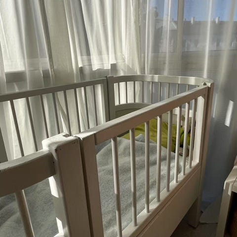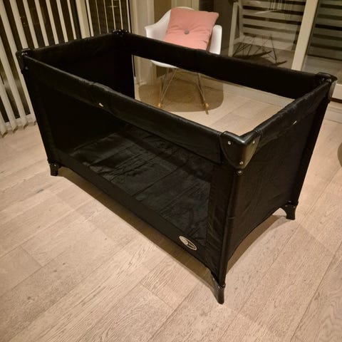 Reiseseng fra Yngri med madrass. Stått på hytten på fjellet i én sesong og er knapt brukt. Helt strøken. Følger med foldbar madrass. Nypris 900,-