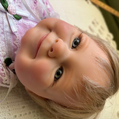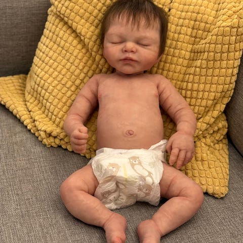 Dette er Landon awake. En liten realborndukke som søker nytt hjem.