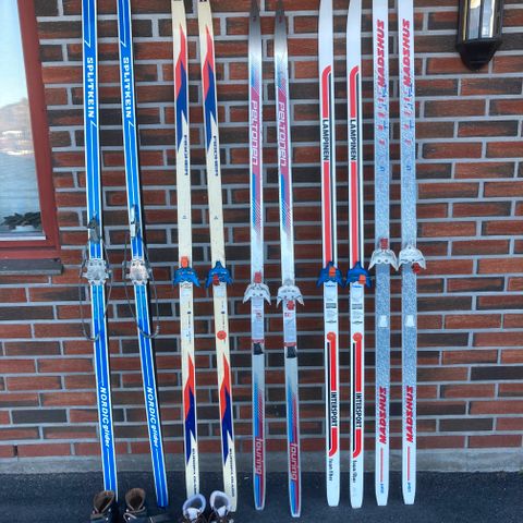 Har noen par med gamle ski.