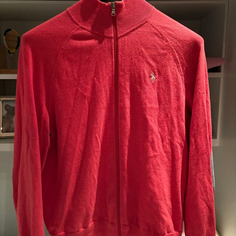 Kornblå Ralph Lauren herreullgenser med zip-line, str.M