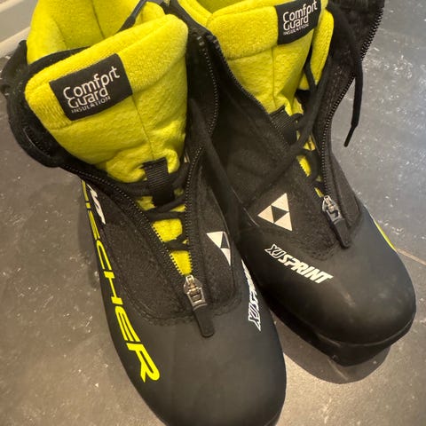 Fischer XJ Sprint langrennssko med svart og gul farge. Str 34
