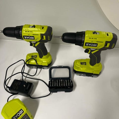 Drill med lader, ekstra batteri og tilbehør medfølger som vist på bilde. Mangler noe bits. Kan sendes etter avtale.