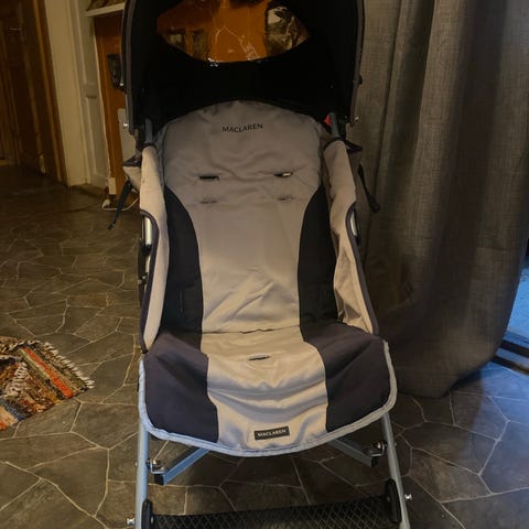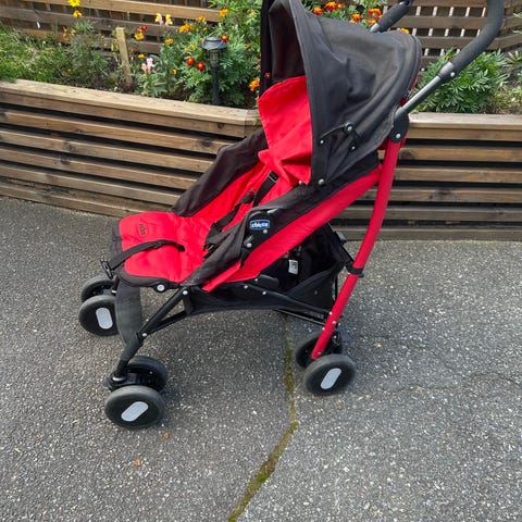 Enkel trillevogn med fire hjul. Kan legges sammen.