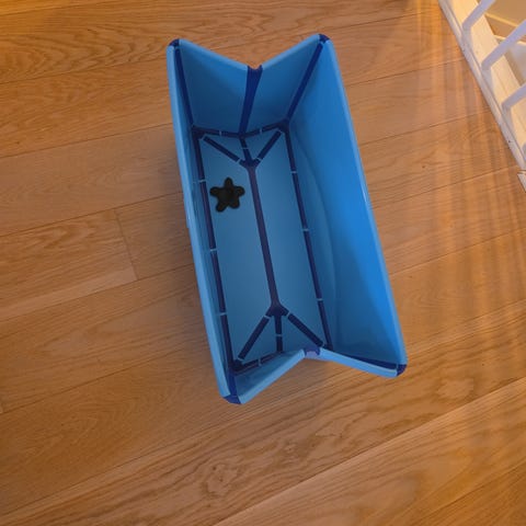 Pent brukt av ett barn. Kan legges sammen for sending, samt å «gjemmes» bort på badet.