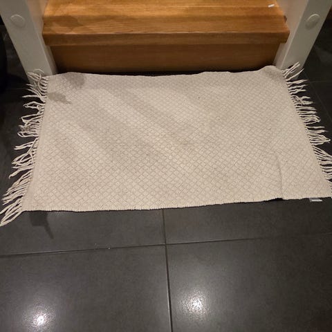 Nyvasket BREI-teppe i utmerket stand. Ingen skader eller flekker. Teppet stammer fra et røykfritt og dyrefritt hjem.