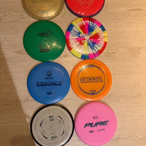 Jeg selger en discgolfbag med 26stk disker jeg har brukt i løpet av 2025. Baggen er helt ny og ikke brukt, noen disker fremstår som ganske ny og noen er innspilt/banket inn.