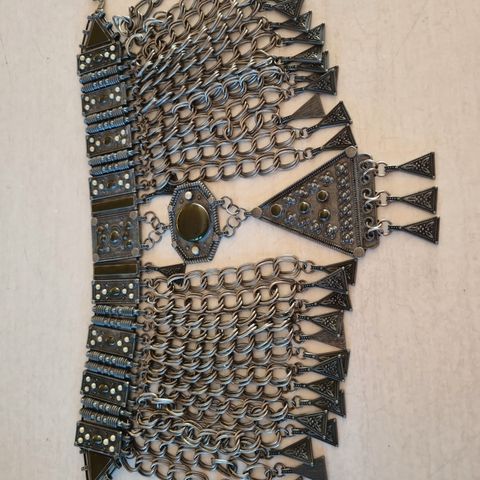 Lite brukt halssmykke i metall med mynter. Klirrer vakkert! Kjøpt på Etsy en gang på starten av 2010-tallet.