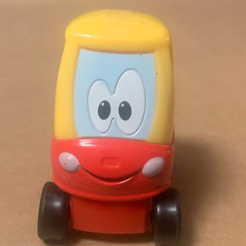 Gul taxi lekebil med øyne. Kan åpne dører og bagasjerom.