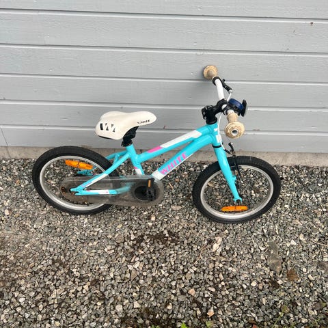 White offroad sparkesykkel. Kraftige luftfylte dekk. Kan brukes til å kjøre på stier.