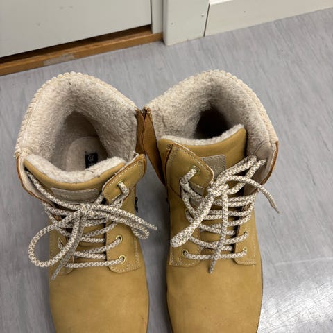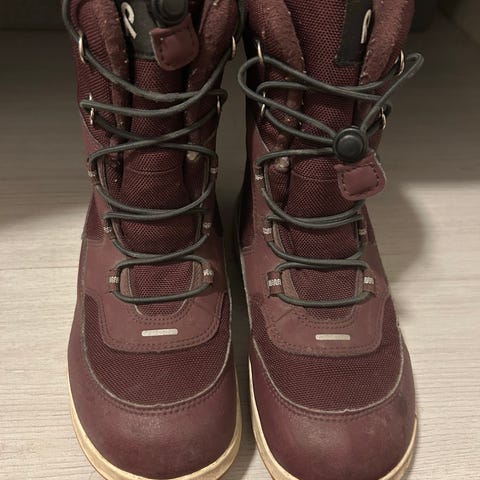 Barnestøvler i svart farge, størrelse 37, tilpasset jente. Støvlene har solid såle med godt grep og snøring foran for justering. Egnet for utendørs bruk.