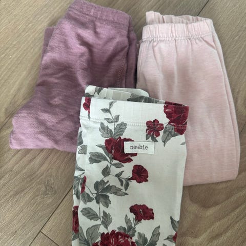 Bukser, bodyer og strømpebukser i str. 74. Sokkene er noe mindre.