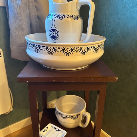 Egersund Fajance vaskesett og en gammel vinballong med original trekirke