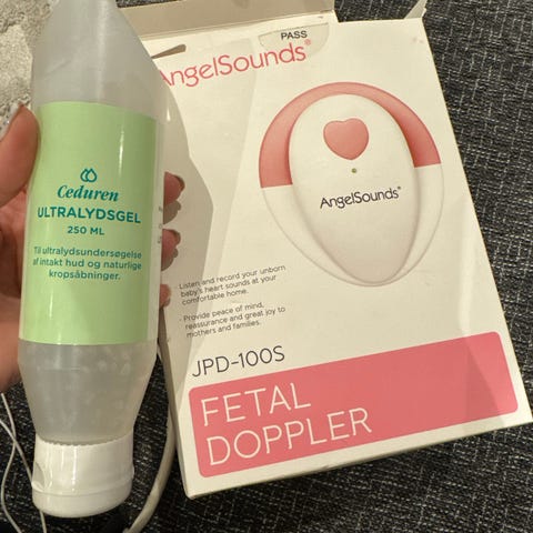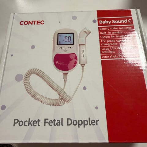 TO Listen Angel's Heartbeat LSL-T501 Doppler fosterscanner med hvit og blå farge. Enhet for å lytte til og overvåke fosterets hjerterytme.
