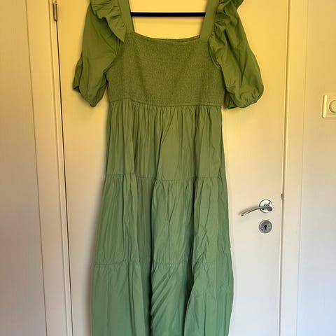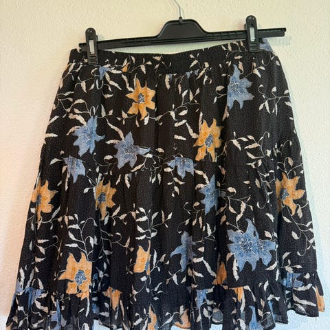 Sofie Schnoor kjole i størrelse XL, laget av polyester. Skjørtet har en rosa, brun, svart farge med leopardmønster, har volanger, veldig kult på !
