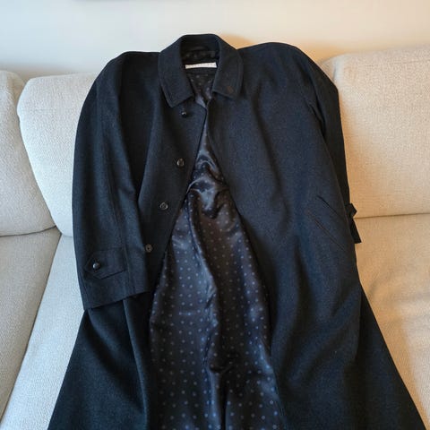 Vintage kvalitetsfrakk i ull selges. Fra D’Puccelli for amerikanske Al. Koralchick. Omtrentlig størrelse 54, vil jeg gjette - se mål på bilder.