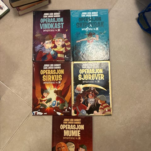 Jørn Lier Horst sin barnebok serie om Detektivbyrå nr 2: Operasjon Mørkemann, Operasjon Solnedgang, Operasjon Bronseplass, Operasjon Sirkus, Operasjon Mumie, Operasjon Tordensky, Operasjon Sjørover, Operasjon Påskelilje og Operasjon Spøkelse.