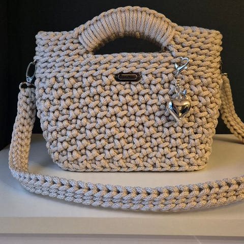 Nydelig heklet veske med sølvdetaljer og magnetlås 💖 strørrelse 21x17cm. Reim ca 100cm.