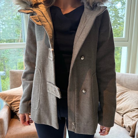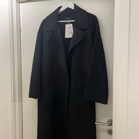Halvlang åpen jakke/frakk. Zara, størrelse M, fargen svart. Lommer på sidene. Kun brukt et par ganger, fin høst og vår jakke, passe tykk.