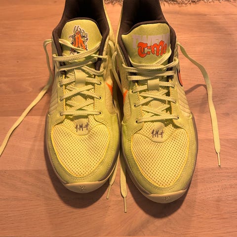 Pent brukte Nike Ja Morant 1 selges i størrelse 46. Skoene er i god stand med fortsatt bra komfort, stabilitet og godt grep på banen. Kun normale bruksspor, ingen hull eller skader. Lite slitasje på både såle og overdel.