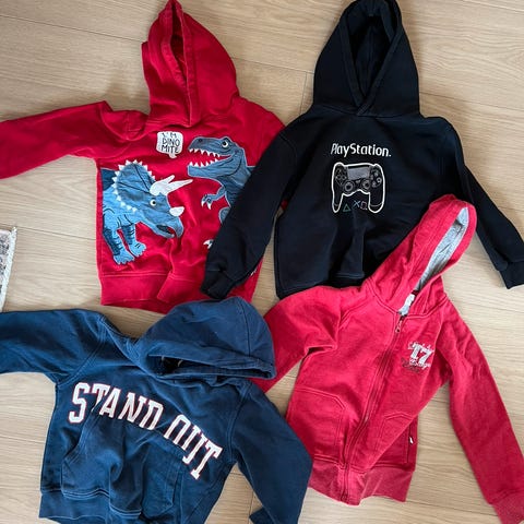 Hettegenser, bukse og t-shirt str 104-110